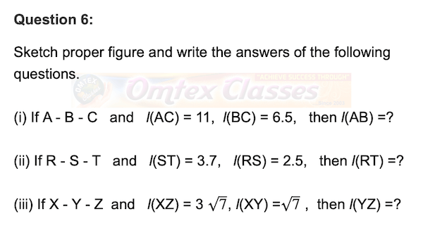 - Answer the following questions. i. If A - B - C and d(A,C) = 17, d(B,C) = 6.5 then d…